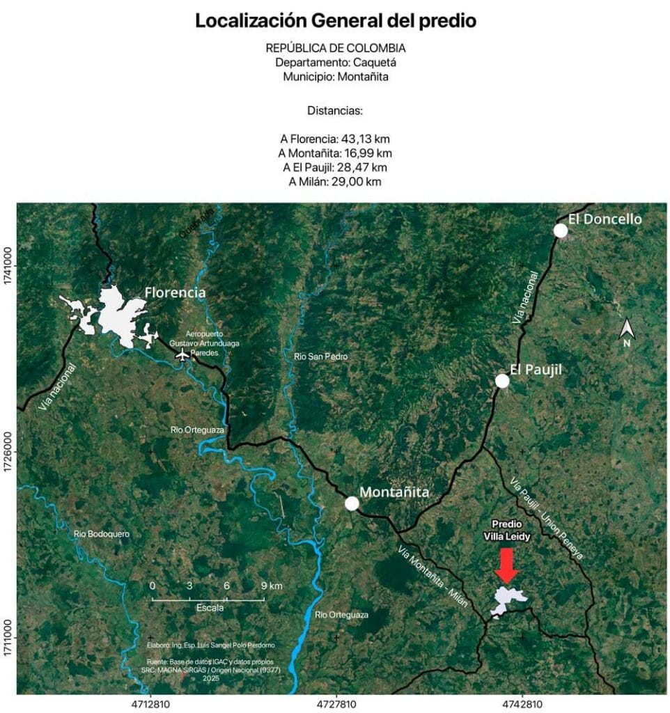 Localización general del predio Villa Leidy en el departamento del Caquetá.
