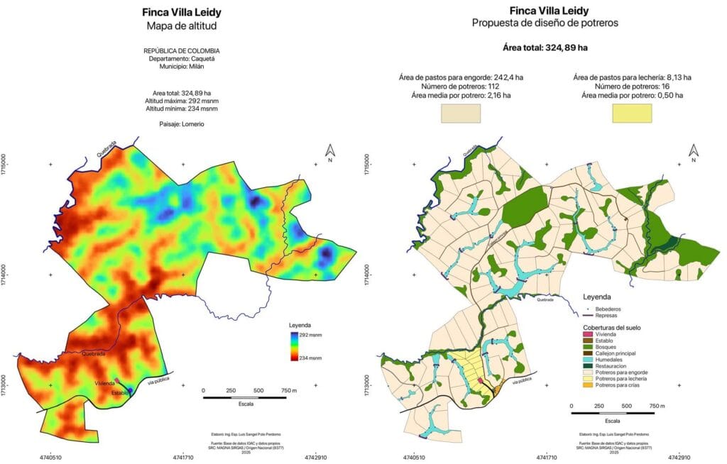 El predio “Villa Leidy”, con una extensión total de 324,89 hectáreas, representaba un escenario crítico de abandono productivo. Tras años de descuido, los nuevos propietarios heredaron una finca con pastos completamente enmalezados, infraestructura de cercos colapsada y ganado con graves problemas sanitarios. El reto no era solo realizar un mapa, sino aplicar una reingeniería total para transformar un territorio degradado en un sistema ganadero de alta eficiencia en la zona de transición amazónic